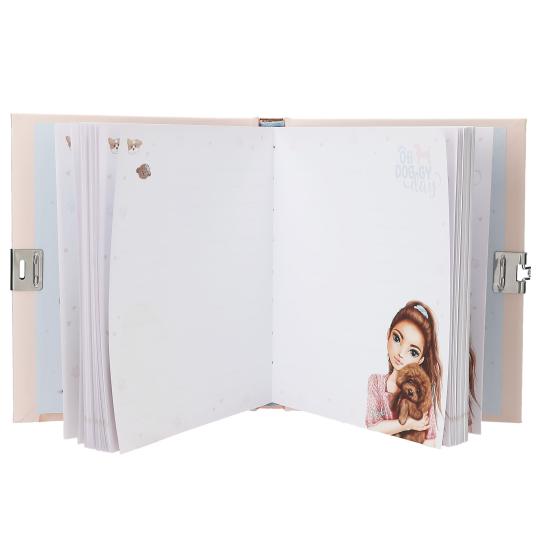 Para secretos y deseos. El diario de TOP Model Doggy, con candado de corazón, diseño de una modelo y muchos perritos monísimos, tiene 192 páginas con pauta de línea fina y preciosas ilustraciones de perros.