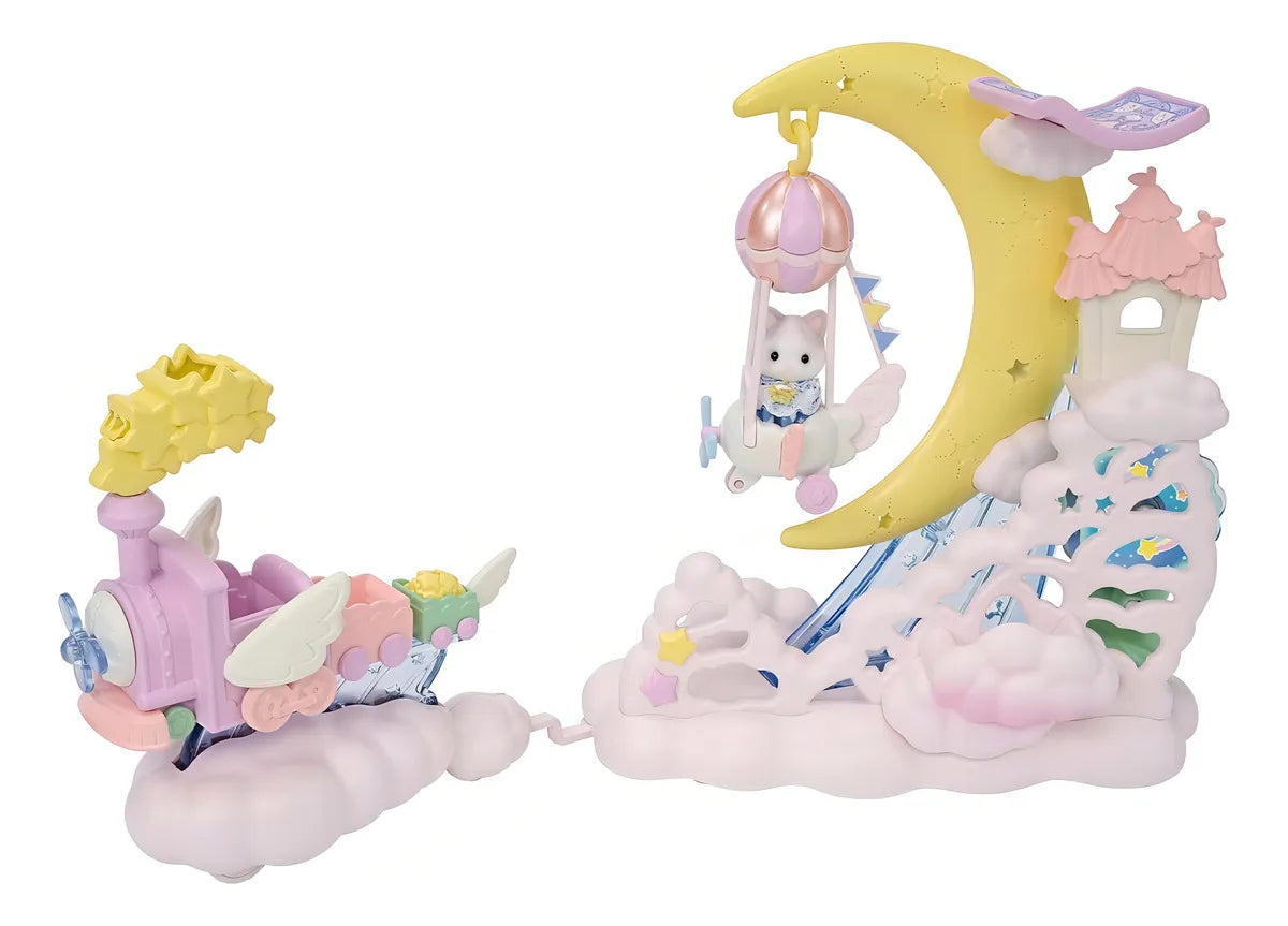 Todos los vehículos pueden conectarse entre sí, creando una verdadera “parada de los sueños” para llevar a los bebés Sylvanian en un recorrido mágico.