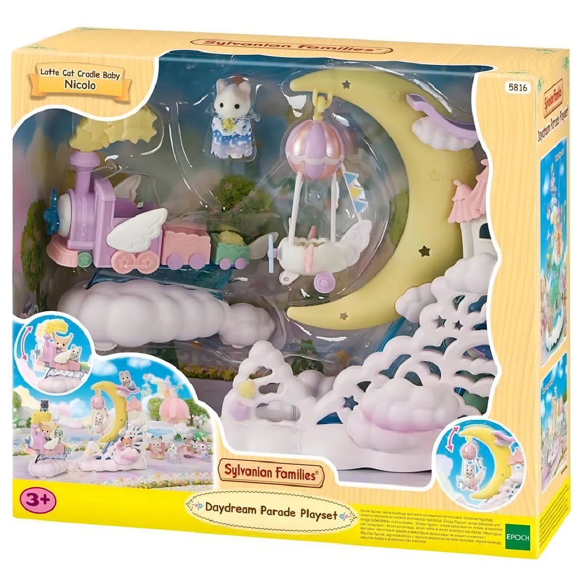 Este playset incluye al simpático Nicolo Fontana, el bebé de la familia Gato Latte, vestido con un traje de estrellas fugaces que lo convierte en el protagonista perfecto del desfile.